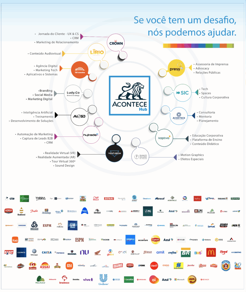 Se a sua empresa enfrenta desafios complexos de marca, comunicação, relacionamento e geração de demanda, o Acontece Hub pode operar como sua assessoria de soluções de performance.